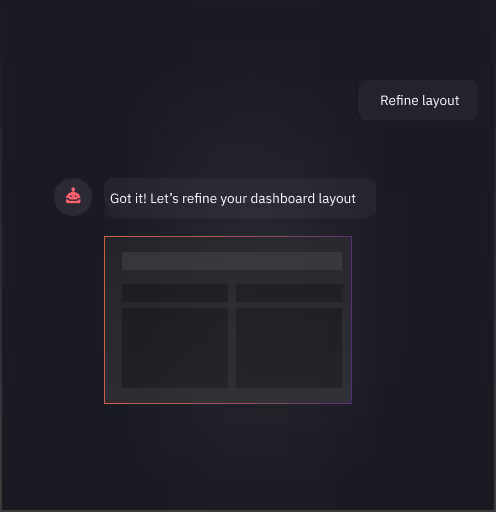 Generate a full app layout, build specific sections like dashboards or forms, and modify styles across components—all with a single prompt.
