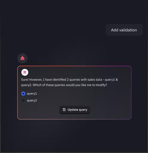 Free up your team’s time— just enter a prompt, and ToolJet will handle validations, error and success messaging.